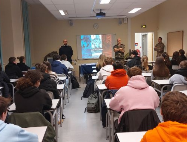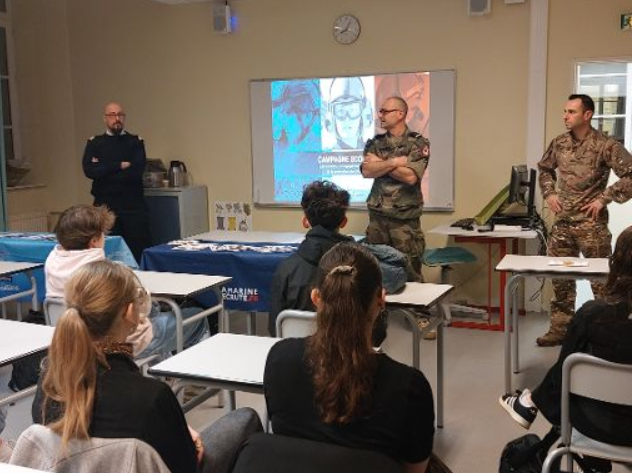Le mercredi 17 décembre, les trois corps d’armée ( l’Armée de Terre, la Marine nationale et l’Armée de l’Air et de l’Espace ) sont intervenus au lycée afin de présenter leurs métiers aux élèves. Cette rencontre s’est déroulée devant un public d’environ soixante élèves.