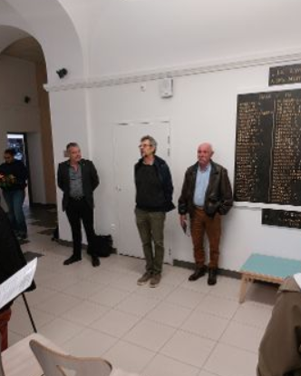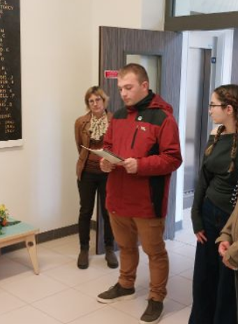 La cérémonie en hommage aux anciens élèves disparus a débuté par un morceau de musique joué par Oscar. Cela s’est poursuivi par le dépôt d’une gerbe et la lecture, par Paul, d’un magnifique texte d’un poilu.